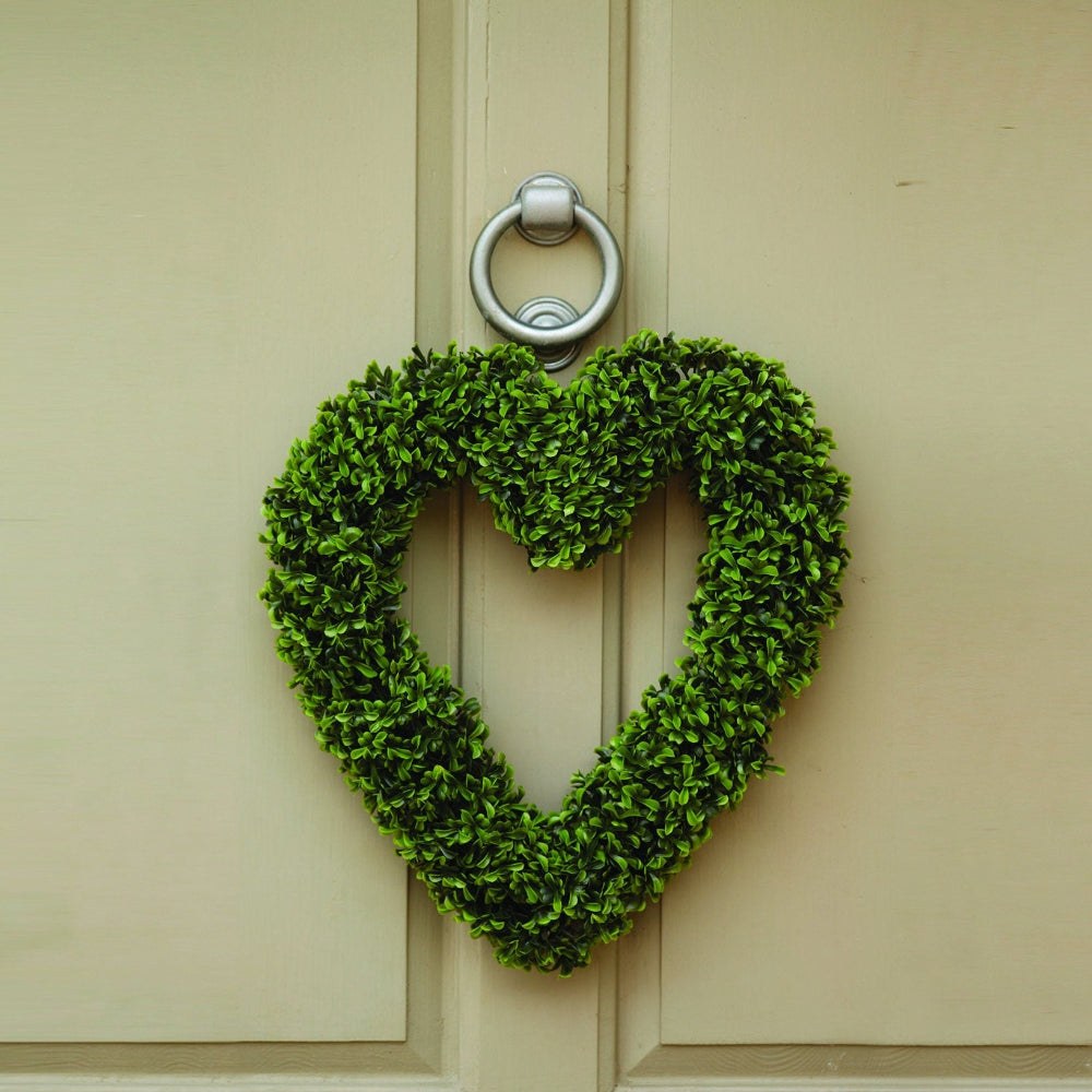 Boxwood heart wreath is a beautiful addition to any door frame and a great alternative to using a wreath. It is UV treated and weather resistant meaning the colours wont fade drastically over time. This hanging heart can be hung on doors, window frames, fences and walls creating a lovely finish.